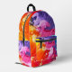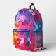 All Over Printed Backpack. Colourful oil paint abstract in blue, purple, pink, orange, red, and yellow all-over-print tote bag A bright modern design.