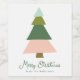 Modern Christmas wine labels featuring an illustration of a Christmas tree in shades of green and blush pink. "Merry Christmas" is displayed in a whimsical green script with your family name shown below. The Christmas tree wine labels are perfect for adding a festive touch to your holiday party.