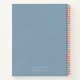 A scatter of modern, illustrated flowers in bold and feminine colours of ivory, yellow, orange, violet and teal pop against a dusty blue background making this notebook an ideal accessory for taking notes, journalling, school, work or as a diary. Personalise the two coordinating coloured text boxes on the front with a name or school subject and the text on the back with contact information if the notebook is lost and then found.