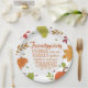 Make your Thanksgiving dinner with friends even more special with these beautiful modern Friendsgiving paper plates with "Friends who are family gather together and give thanks" text in orange watercolor font, with colourful leaves and foliage border.