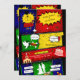 Celebrate your wedding in style with this aesthetic fun modern comic story book. The wedding invitation is colourful and tells a retro comic story with speech bubbles. It shows rings, white dove, church, cake and a wedding couple silhouette. Personalise it with your details, your monogram for your extraordinary cartoon celebration.