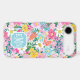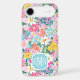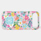 Customise this gorgeous modern colourful flower garden of flowers in pink, blue, orange, yellow and white iPhone 17 air case with your your initials in a modern CAP font in white on blue. It's so vibrant and happy!