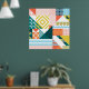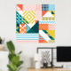 Bring your space to life with this striking geometric poster. The bold colours and abstract mid-century modern pattern add a retro yet contemporary flair to any room. Ideal for home offices, studios, or creative spaces that need a splash of vibrant style.