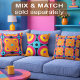 This hand‑drawn throw pillow is covered with oversized circular flower motifs in orange, pink, yellow, and purple, all arranged around a turquoise centre. The bold geometric symmetry stands out against the black background, giving it a vibrant retro style. It’s perfect for making a colourful statement on your sofa, bed, or reading nook.