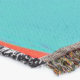 A quality printed throw has its advantages. This is a much finer weave throw than its loopier cousins, and though lighter, it is worth the investment for custom room accessorizing. The back is much prettier than the typical brown, and the fringe on the long sides very vivid, the selvage nicely done. Before photographing, I washed the throw in cold water, delicate, with a thicker woven throw the same size. On tumble dry low, this throw was dry in half the time as the other. This is a very practical quality if you use throws for furniture covers or to wrap up in frequently. The sleekness of the fabric makes it a great layer for accenting or protecting without the feeling of sitting on too much stuff. Perfect for napping or when you feel a light chill coming on. The color printing is beautiful and on this fabric, matched the design and color of my Photoshop image. This is an advantage for blending room fabrics and colors. The fringe on the short sides prints the colors from the design image and therefore varies from the side fringe. I streaked a white fractal line through the plaid pattern to give the illusion of weaving. This printed as crisp as an illusory thread, and put some white in the short side fringe, showing another advantage of print vs loomed- for artistic purposes, line lines, detail, and color integrity can be planned and preserved. My loomed throws have color limitations and more of a needlepoint texture. Print throws reproduce an exact image. The throw felt a little stiff straight out of the package, but this went away in the first delicate wash. Of course I searched the wash water for ink or bleeding and there was none.