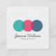 This modern square business card features three overlapping circles in teal, pink and blue against a white background with your name and title in dark grey on the front. Coordinating colours of teal, pink and blue is used on the back side. It is ideal for various professions like Event and Party Planners, Consultants, Stylists, Makeup Artists, Interior Designers, etc; anyone who wants a modern, fun and colourful design for their business card.