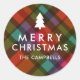 Colourful Modern Plaid Christmas Tree Name Classic Round Sticker