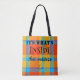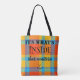 A modern designer bag featuring a geometric plaid pattern in happy colours and your own custom (funny or other) texts (optional). You can rotate or scale the pattern if you like.