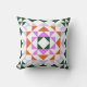 Colourful Modern Quilt Block Geometric Design in Green and Purple Throw Pillow