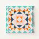 This stylish notebook features a modern geometric barn quilt block in a fresh colour palette of cute retro style colours including turquoise, orange, navy blue, and blush pink. Personalise it with your name. Great gift idea!