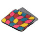 Cool, unique, trendy, urban abstract illustration pattern art made with colourful drop like curvy geometric shapes in flower abstraction. Colourful, modern, playful graphic design artwork in red, pink, yellow and blue colours.
