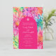Colourful Modern Tropical Watercolor Floral Wedding Invitations features colourful watercolor tropical flowers in pink, purple, orange, green and turquoise. Add your custom wedding invitation information in the frame in elegant white calligraphy script typography. Personalise by editing the text in the text boxes. Designed for you by Evco Studio www.zazzle.com/store/evcostudio
