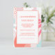 Trendy wedding accommodation detail enclosure card design features modern abstract memphis pattern in colourful shades of coral, teal green, pink and white. Customise your details in stylish script in living coral, arranged in a coordinating light coral border on a white background template. The back of the card is solid light coral. Be sure to see the collection link on this page to view all of the matching items! Please direct questions or custom requests to invitationsuites@gmail.com.