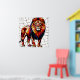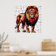 Multicolored lion sculpture designed with intricate mosaic patterns, standing on a neutral background. The artwork exhibits creativity, artistry, and symbolises strength and pride in its vivid and abstract design.