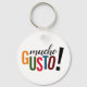 Break the ice with this keychain, which features colourful "Mucho Gusto" (Spanish for "nice to meet you") word art on a white background.