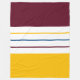 This colourful fleece blanket features a modern striped pattern in mulberry purple, amber yellow, and white stripes.
