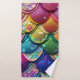 Colourful Multicolored Rainbow Mermaid Tail Print Bath Towel Set