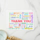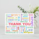 This colourful card features an arrangement of the words Thank You in twenty different languages.
