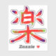 A cool sticker featuring the kanji for music, comfort, and ease. Words that use 楽 include 音楽 (music), 楽器 (musical instrument), and 楽しい (fun). Anyone who likes Japanese culture or music will love this sticker.
