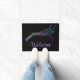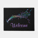 Colourful Music Notes Black Welcome Mat. Rainbow coloured musical notes and staff and customisable text on a black background. Perfect for outside your studio or home and a great gift for your favourite musician or music lover.