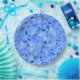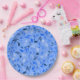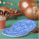 A jumble of colourful music notes against a blue background is a unique design for musicians, music teachers and students at birthdays and holidays.