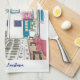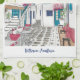 Share your memory of holidays on a beautiful Greek Island in the Mediterranean through this vibrant travel drawing kitchen towel with customisable text templates. This colourful illustration of the iconic blue and white architecture of Mykonos town makes a perfect vacation souvenir and keepsake for anyone who wants to travel to Greece each time they cook.