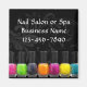 Colourful and stylish design features bright bottles of nail polish in pink, purple, green, orange, yellow, blue and green. The perfect compliment to your nail salon business. Customise the text to fit your needs.