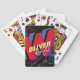 Stylish playing-cards personalised with his name and surname in cool and bold font style, over a colourful background with a big oversized red initial letter with black shadow... a modern monogrammed design, inspired by comics.