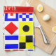 Colourful Nautical Signal Flags Red Name Monogram Tea Towel