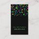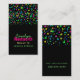 Eye popping colourful mummy networking business card, done in a vertical style, with a black background. Graphics of colourful neon confetti, decorates the top half of the card, with green, hot pink, and yellow custom text below ready to personalise. Great card to hand out to other mothers for arranging baby sitting, play dates, parties and more.