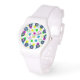 Colourful neon dots and shapes retro pattern watch for cheerful days. Make your time burst with neon explosion. Lively neon dots and shapes pattern create a visually striking and modern design. The pattern is a true standout with its electrifying neon dots and shapes pattern that demands attention. The neon hues include bright pinks, electric blues, vivid greens, and energetic yellows, creating a dynamic and lively colour palette. The pattern consists of a mix of vibrant dots and irregular shapes. The dots may vary in size, creating a sense of movement and energy, while the shapes contribute to the overall modern and edgy aesthetic. Guarantee to brighten up your day!