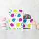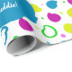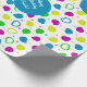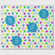 Colourful neon dots and abstract shapes retro pattern eye-catching gift wrapping paper with personalised message (customisable). Lively neon dots and shapes pattern create a visually striking and modern design. The pattern is a true standout with its electrifying neon dots and shapes pattern that demands attention. The neon hues include bright pinks, electric blues, vivid greens, and energetic yellows, creating a dynamic and lively colour palette. The pattern consists of a mix of vibrant dots and irregular shapes. The dots may vary in size, creating a sense of movement and energy, while the shapes contribute to the overall modern and edgy aesthetic. Guarantee to brighten up any special day and add vivid and bold present to any celebration or occasion with bold colours and personalised message.