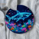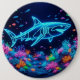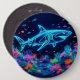 Colourful neon shark 6 cm round badge