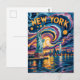 Colourful New York Skyline Retro Liberty Van Gogh Postcard