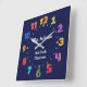Colourful Number Custom Name Teacher Classroom Square Wall Clock
