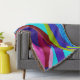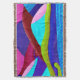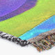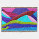 A quality printed throw has its advantages. This is a much finer weave throw than its loopier cousins, and though lighter, it is worth the investment for custom room accessorizing. The back is much prettier than the typical brown, and the fringe on the long sides very vivid, the selvage nicely done. Before photographing, I washed the throw in cold water, delicate, with a thicker woven throw the same size. On tumble dry low, this throw was dry in half the time as the other. This is a very practical quality if you use throws for furniture covers or to wrap up in frequently. The sleekness of the fabric makes it a great layer for accenting or protecting without the feeling of sitting on too much stuff. Perfect for napping or when you feel a light chill coming on. The color printing is beautiful and on this fabric, matched the design and color of my Photoshop image. This is an advantage for blending room fabrics and colors. The fringe on the short sides prints the colors from the design image and therefore varies from the side fringe. I streaked a white fractal line through the plaid pattern to give the illusion of weaving. This printed as crisp as an illusory thread, and put some white in the short side fringe, showing another advantage of print vs loomed- for artistic purposes, line lines, detail, and color integrity can be planned and preserved. My loomed throws have color limitations and more of a needlepoint texture. Print throws reproduce an exact image. The throw felt a little stiff straight out of the package, but this went away in the first delicate wash. Of course I searched the wash water for ink or bleeding and there was none.