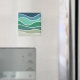 Abstract retro style illustration of colourful (blue, navy blue, grey, green, turquoise) ocean waves decoration on white background