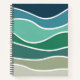 Abstract retro style illustration of colourful (blue, navy blue, grey, green, turquoise) ocean waves decoration on white background