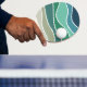 Abstract retro style illustration of colourful (blue, navy blue, grey, green, turquoise) ocean waves decoration on white background