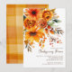 This Thanksgiving invitation features a beautiful bouquet of colourful orange fall flowers, making it perfect for a festive holiday gathering. The invitation is simple and elegant, with a white background and black text. The bouquet of fall flowers adds a touch of whimsy and fun, and the overall design is perfect for celebrating the Thanksgiving holiday with your loved ones.