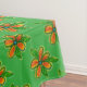 Modern and colourful tablecloth with orange, yellow and blue floral pattern on green, the green background can be changed to your favourite colour.