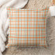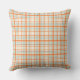 This throw pillow features a colourful plaid design in orange, blue, and brown on a cream background. Additional colours are available in my shop: www.zazzle.com/foxyboxysolutions.