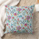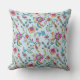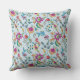 Colourful Orange Purple Teal Floral Chintz on Blue Cushion