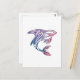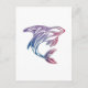 a decorative tattoo design of an orca whale or another fish in blue and purple colours on a postcard