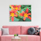 Colourful Orchids stand out on decorative wrapped canvas print.