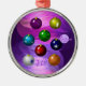 Beautiful Silver Round Christmas Ornament with Red Ribbon, Featuring our Colourful Ornaments Design, with MoonDreams Music Logo