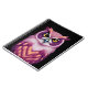 Colourful Owl Bird Artwork design. Colourful, yellow-eyed owl, standing in branch the forest. This oil paint style art is a unique gift for any owl lovers.