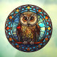 Colourful Owl Bird Faux Stained Glass Art Window Cling