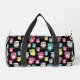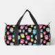 Colourful Owl Birds Black Background Pattern Duffle Bag