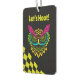 Bring a unique touch to your vehicle with our Colourful Owl & Chequered Racing air freshener. This eye-catching design features a vibrant owl set against a classic chequered racing background. Personalise it with your custom text for a special touch. Not only does it keep your car smelling fresh, but it also adds a playful and stylish element to your interior!